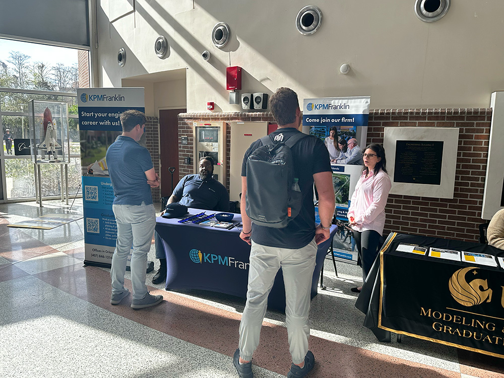 KPM Franklin connected with @University of Central Florida students during the UCF College of Engineering and Computer Science (CECS) Engineers Week 2026 Student Networking Event in the ENG II Atrium on the university’s main campus.