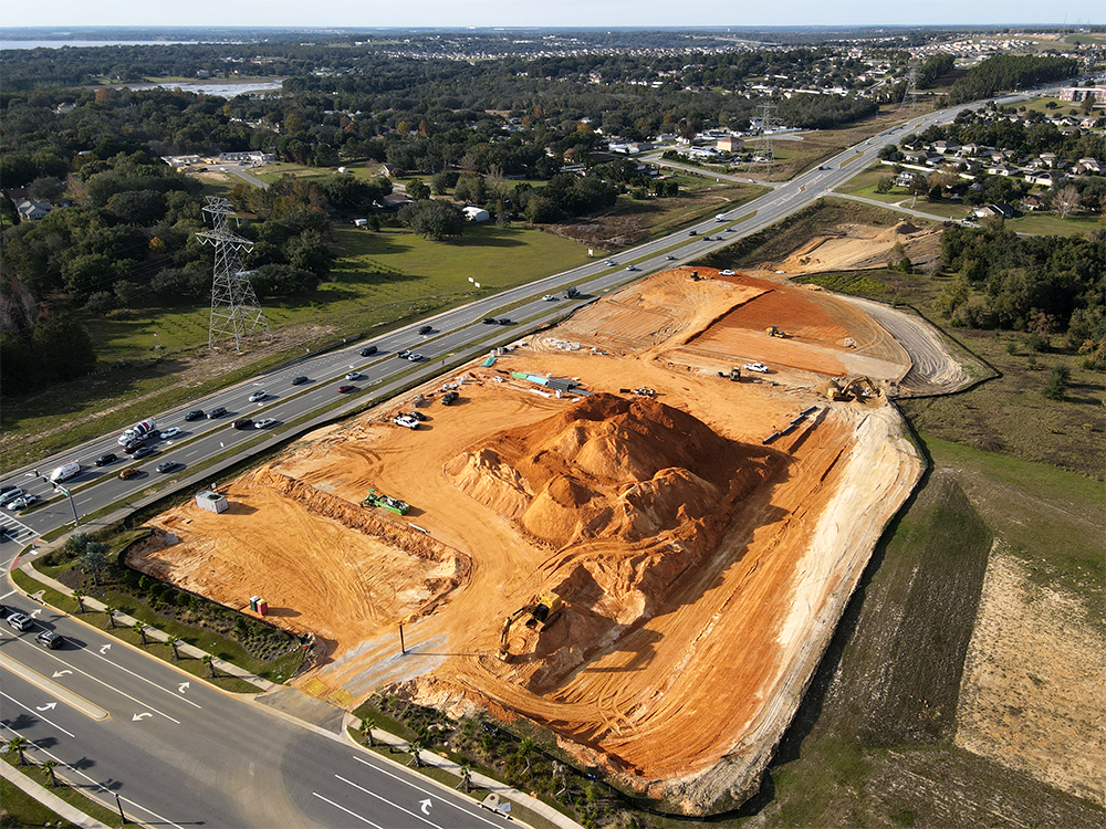 Civil engineering design included conceptual site layout plan, overall site plan, paving and grading plan, drainage plan, utility plan, stormwater management plan, stormwater pollution prevention plan, landscape architectural design plan, City of Clermont pre-application meeting and conceptual plan and site plan reviews, Lake County drainage plan and driveway plan reviews, St. Johns River Water Management District environmental resource permitting assistance, Florida Department of Environmental Protection pre-application meetings and permitting assistance, construction administration and associated site infrastructure.