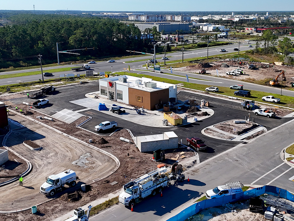 KPM Franklin was contracted by WMG Development to provide civil engineering and landscape architectural design services to develop a site for a Bojangles drive-thru restaurant location on 1.35 acres in the Tomoka Village retail center in Daytona Beach, Florida.
