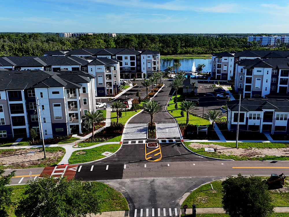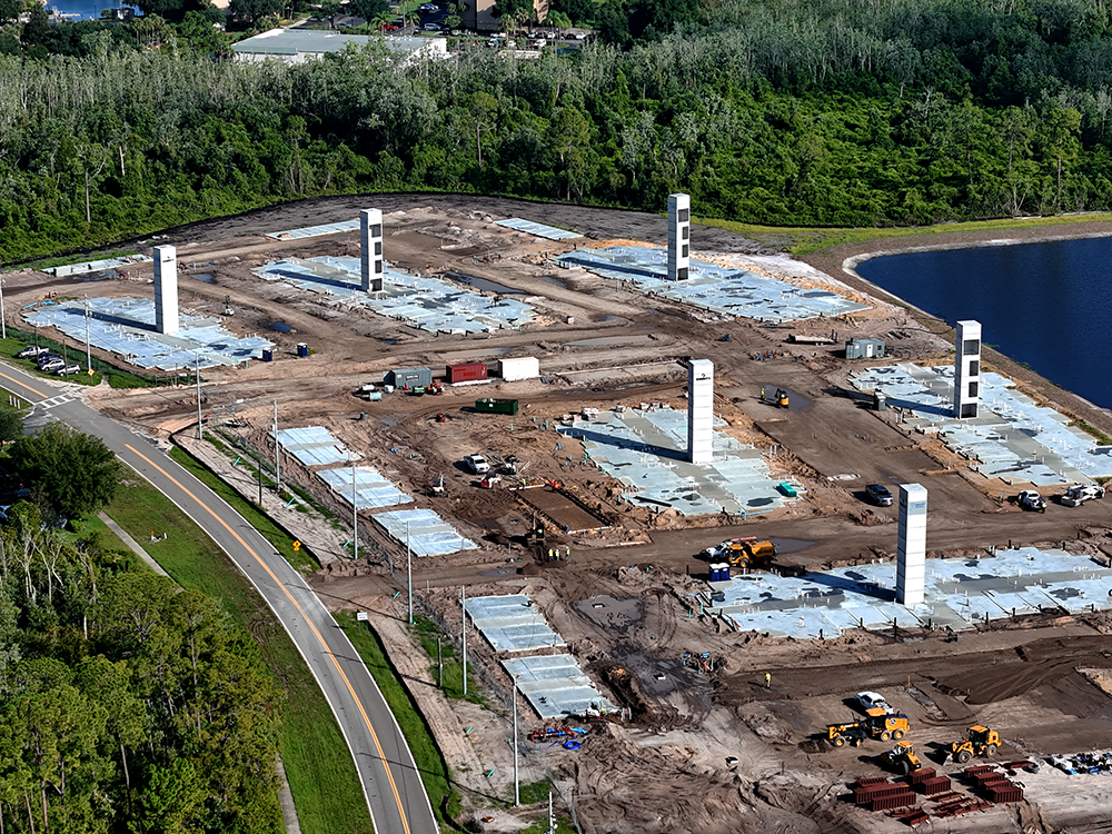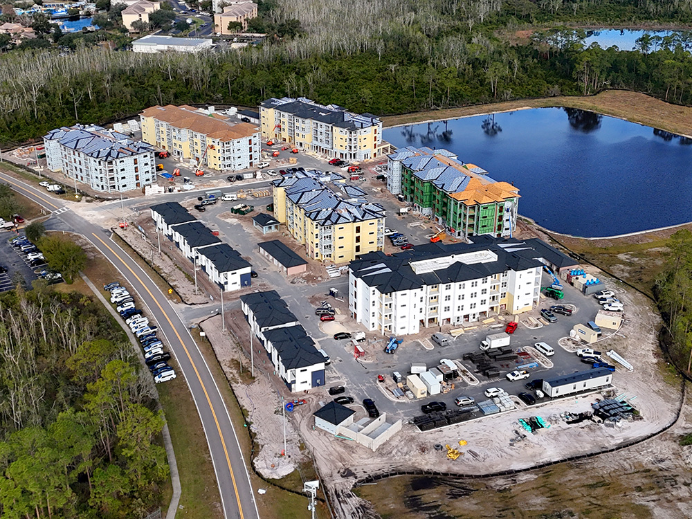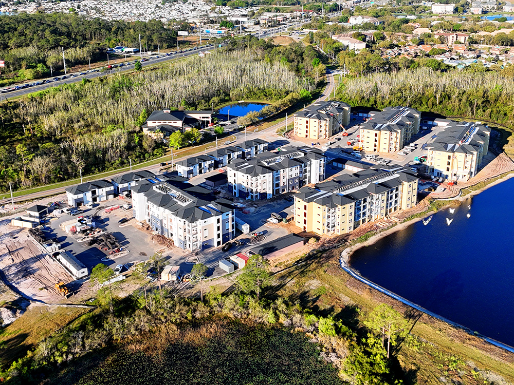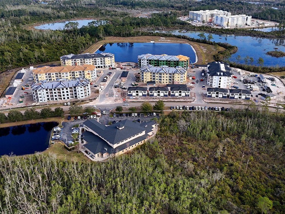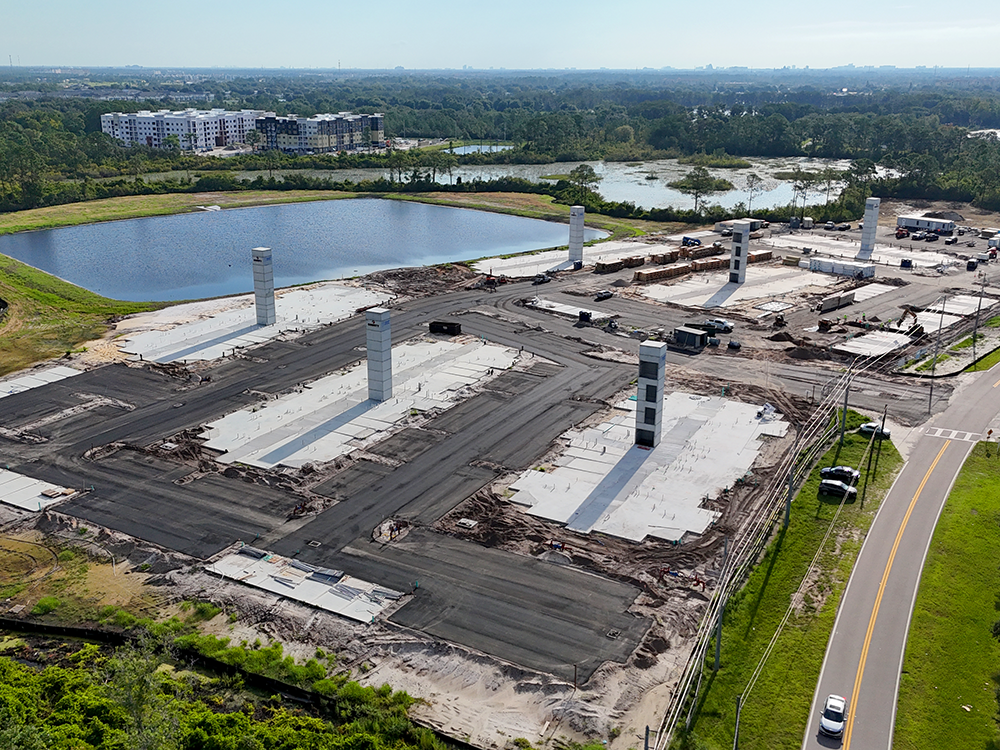 Civil engineering design includes conceptual site plan, overall site plan, paving and grading plan, drainage plan, water and sewer plan, stormwater management plan, stormwater pollution prevention plan, utility coordination, Orange County pre-application meetings and site plan reviews, South Florida Water Management District modification letter, TWA Utility permitting assistance, FEMA LOMR permitting assistance, Florida Department of Environmental Protection permitting assistance, Orange County right-of-way use permitting assistance for offsite roadway improvements and construction administration.
