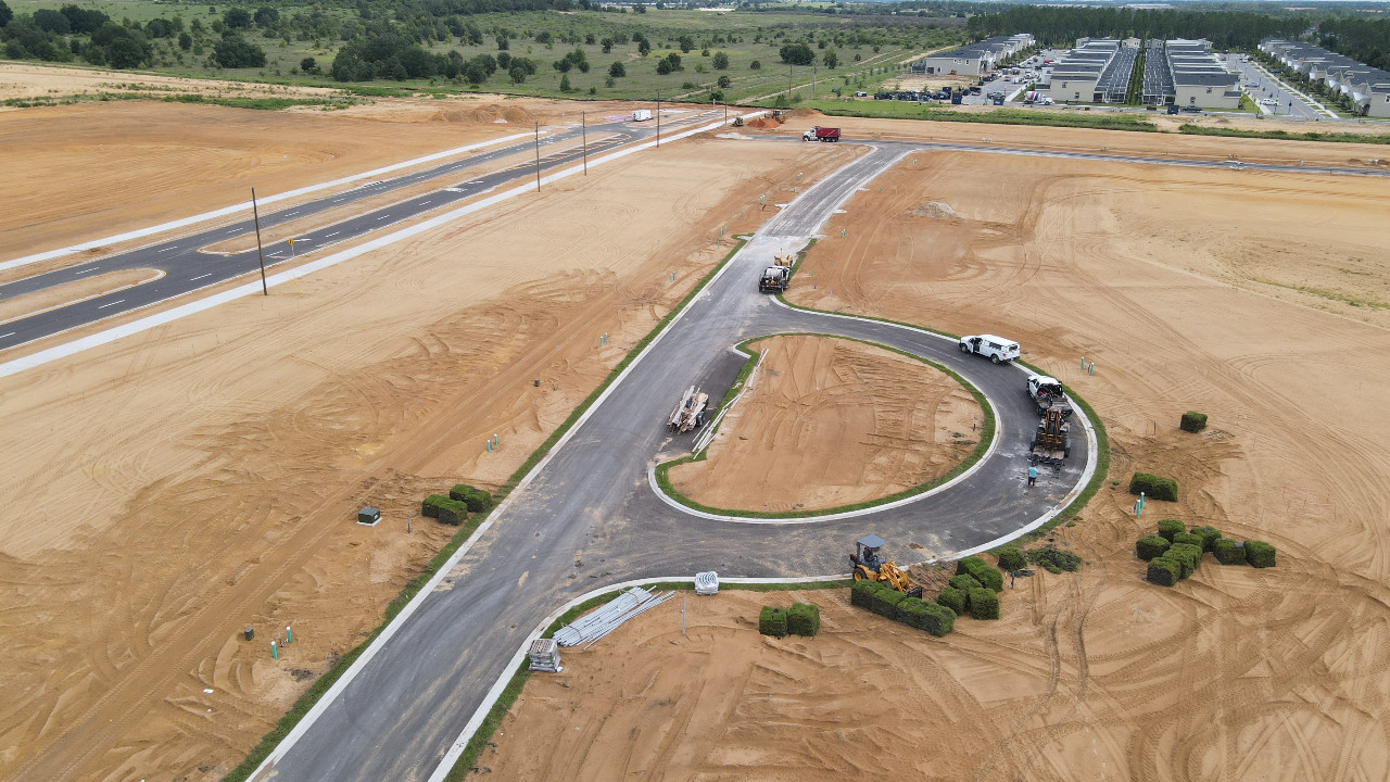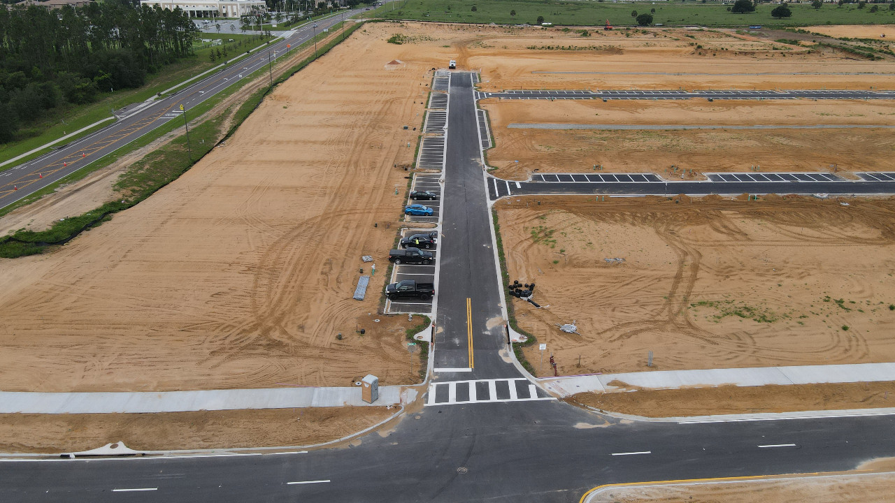 Scope of work included master utility and drainage plans, soil testing coordination, stormwater ponds, paving, grading, permitting assistance, construction specs, topographic and final plating surveys, pavement marking and signage, system improvements to potable water distribution and sanitary sewer and reuse water.