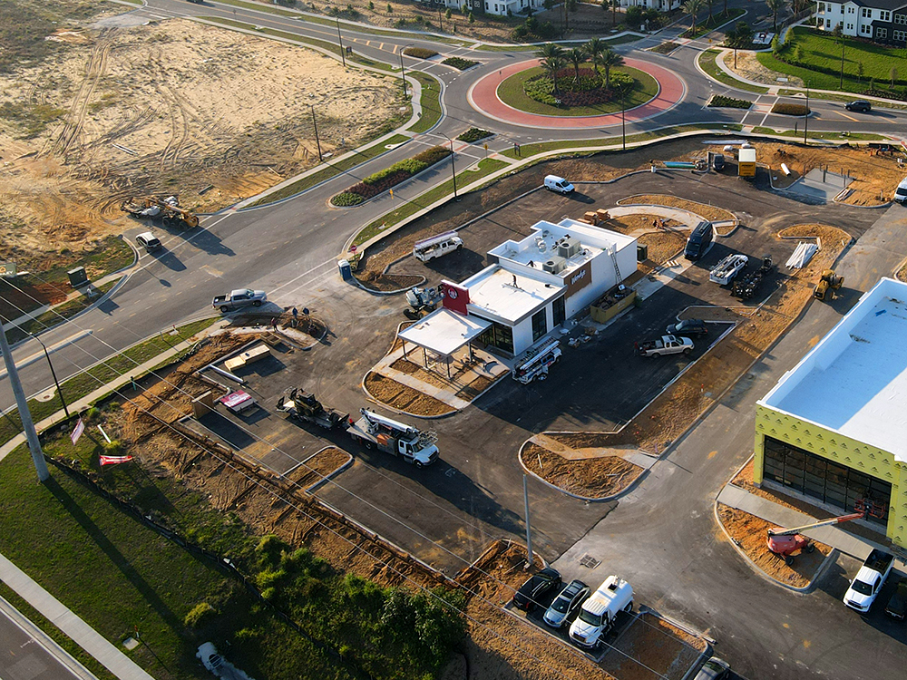 The scope of work included an ALTA/NSPS survey, civil engineering design, permitting assistance, construction documents, paving and grading, parking and drive thru, drainage plan, water and sewer plan, stormwater pollution prevention plan, landscape architectural design plan, Lake County and Florida Department of Environmental Protection pre-application meetings and permitting assistance, City of Clermont joint planning area review, St. Johns River Water Management District modification letter, FEMA water and wastewater permitting assistance and construction administration.