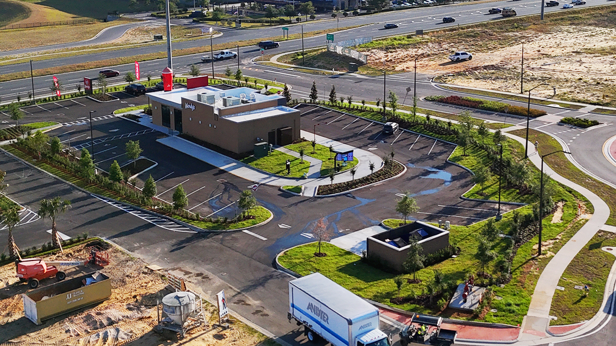 KPM Franklin was contracted by CKE Group to provide land surveying, civil engineering and landscape architecture design services for the Wendys restaurant location on 1.5 acres at Westfall Station in Clermont, Florida.